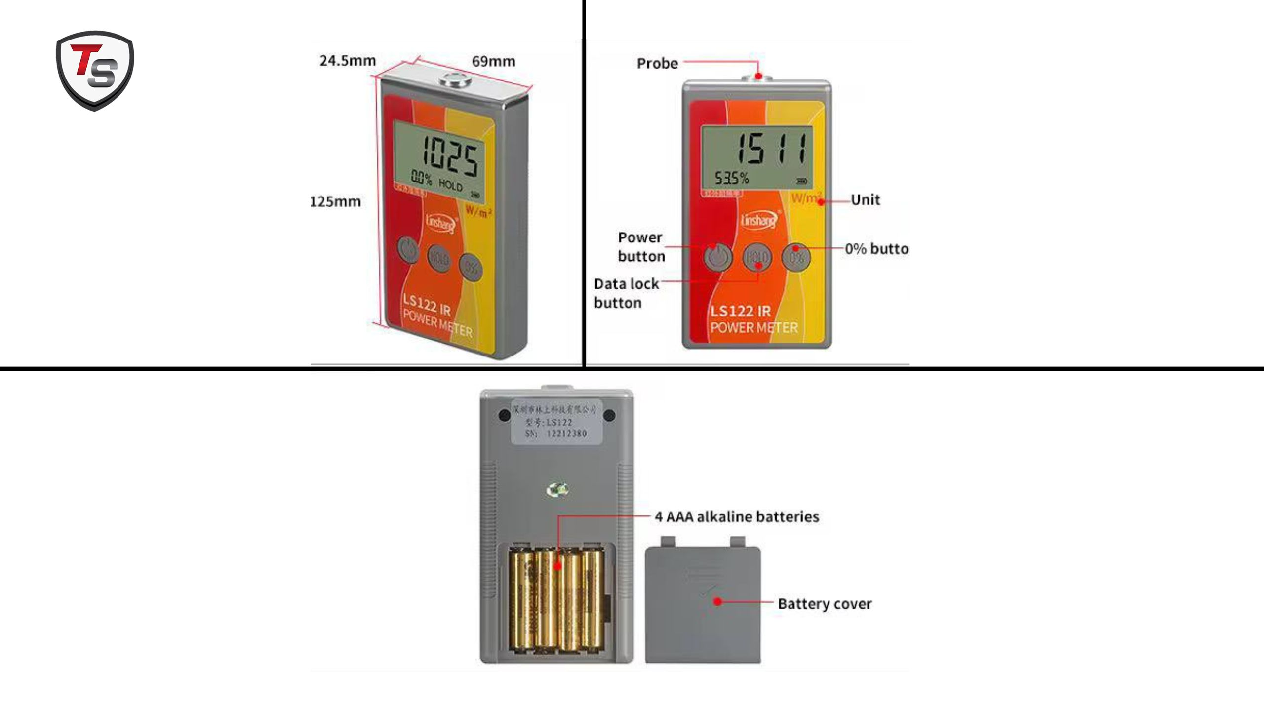 - The solar power meter has wide spectral response which can test the infrared intensity from 1000nm-1700nm wavelength.